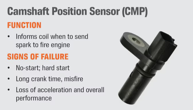 - Common symptoms of a camshaft sensor malfunction.
