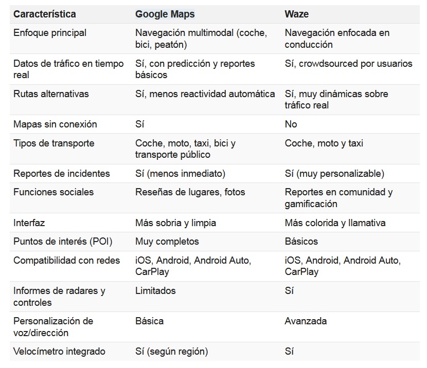 La diferencia entre ambas puede sintetizarse de la siguiente manera: Google Maps se dirige a conductores que valoran la serenidad y la estabilidad en su experiencia de conducción, mientras que Waze se orienta a aquellos que buscan optimizar el uso de su tiempo, incluso si esto implica tomar desvíos por carreteras secundarias o caminos menos transitados.